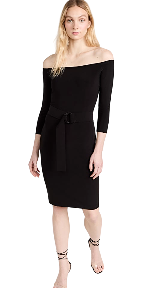 Off Shoulder To Knee Dress - Black