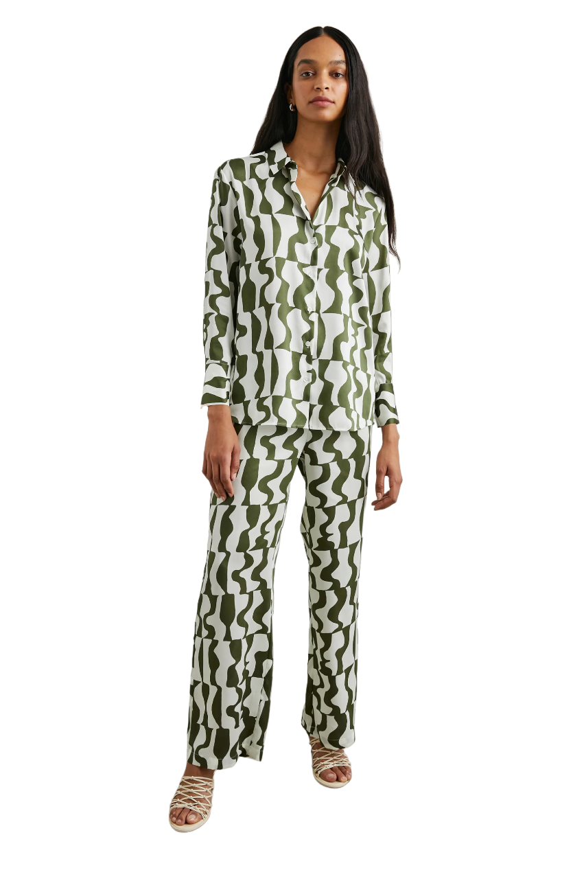 The "Damani Pant" from Rails ties at the waist and flows out to a full-length pant that moves with you effortlessly.100% Polyester