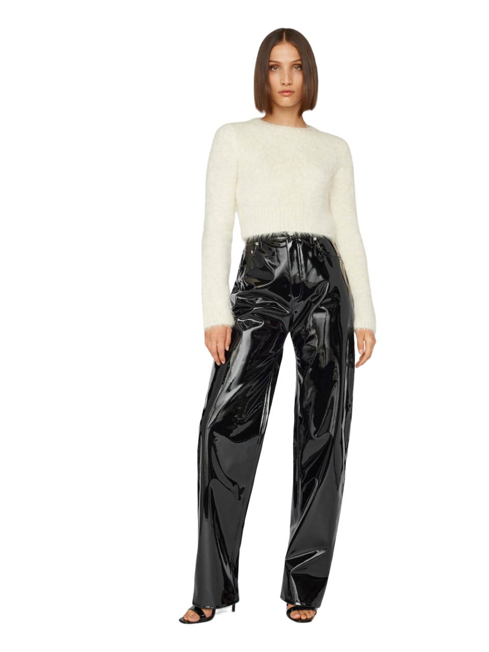 The "Fitted Crew Sweater" from Frame is an alpaca knit that features a cropped crewneck silhouette that pairs well with high-rise trousers.