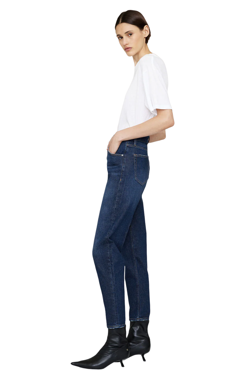The Anine Bing "Hilda Boot" features a sharp pointed toe, low slanted heel, and high-shine outsole. Accented with gold-tone ANINE BING hardware at each heel.