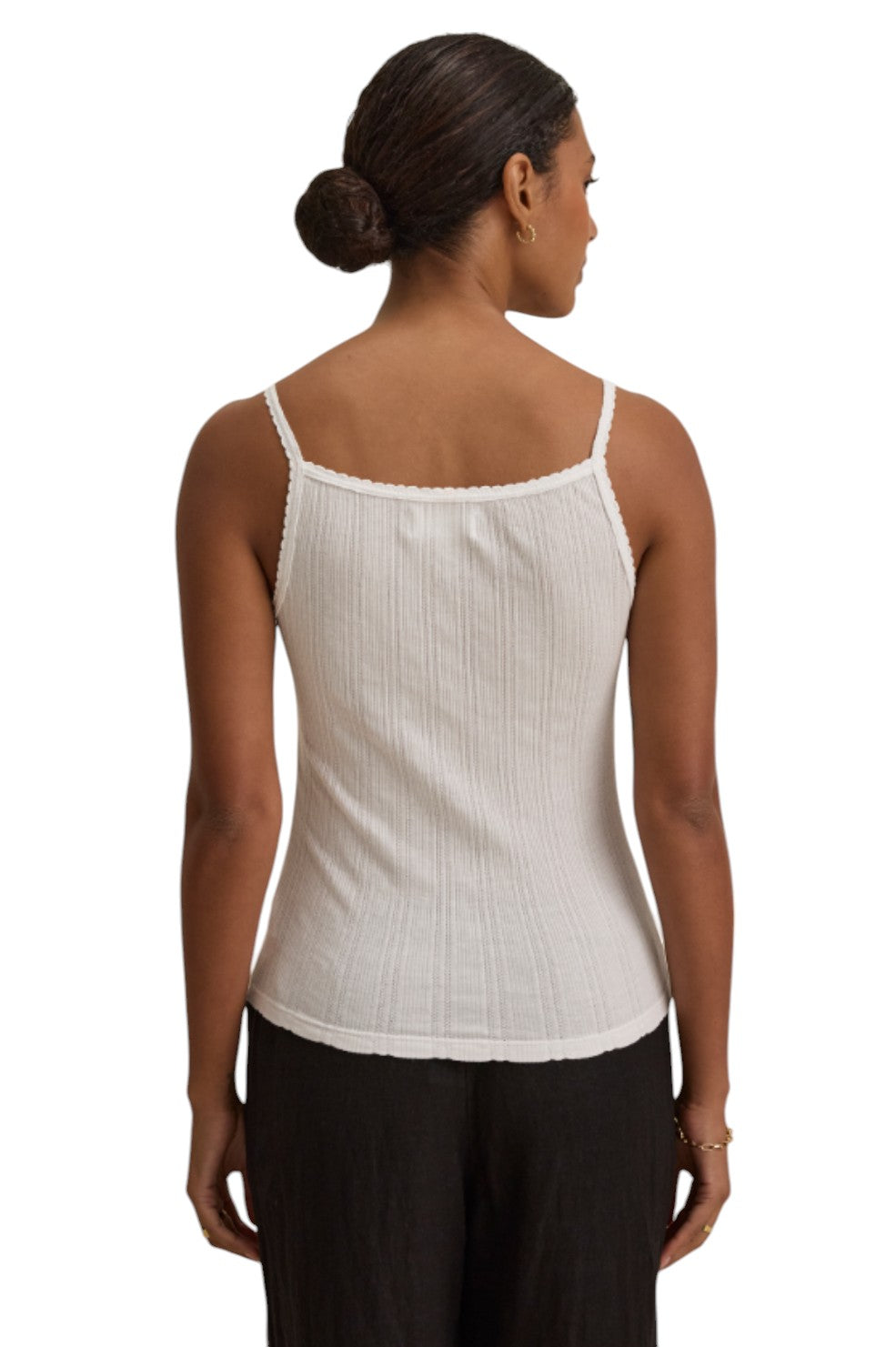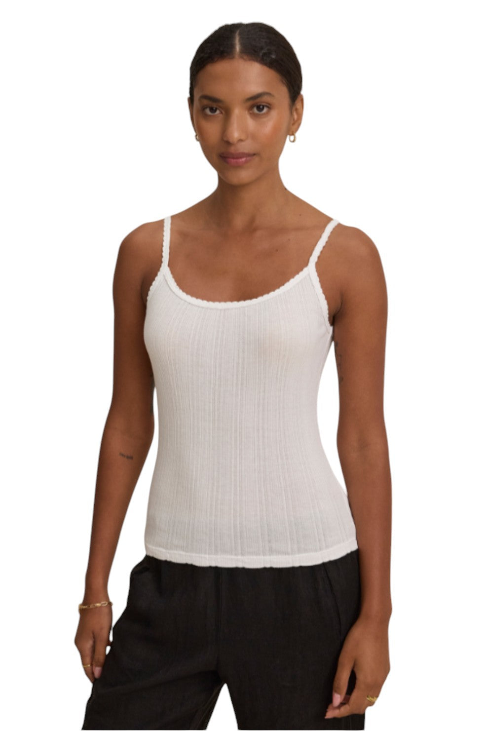 The Iniku Tank" from Velvet is crafted from a soft cotton-modal blend with a beautifully textured pointelle ribbed design. Delicate scalloped edges add a touch of elegance, making it the perfect layering piece to elevate any outfit with ease and style.