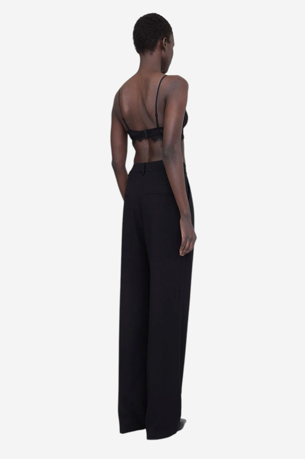 The "Lace Bra with Trim" from ANINE BING is a delicate soft-cup triangle bralette crafted from stretch lace. With its feminine silhouette, adjustable straps, and minimal trim detailing, this everyday undergarment combines beauty and ease in one lightweight essential.