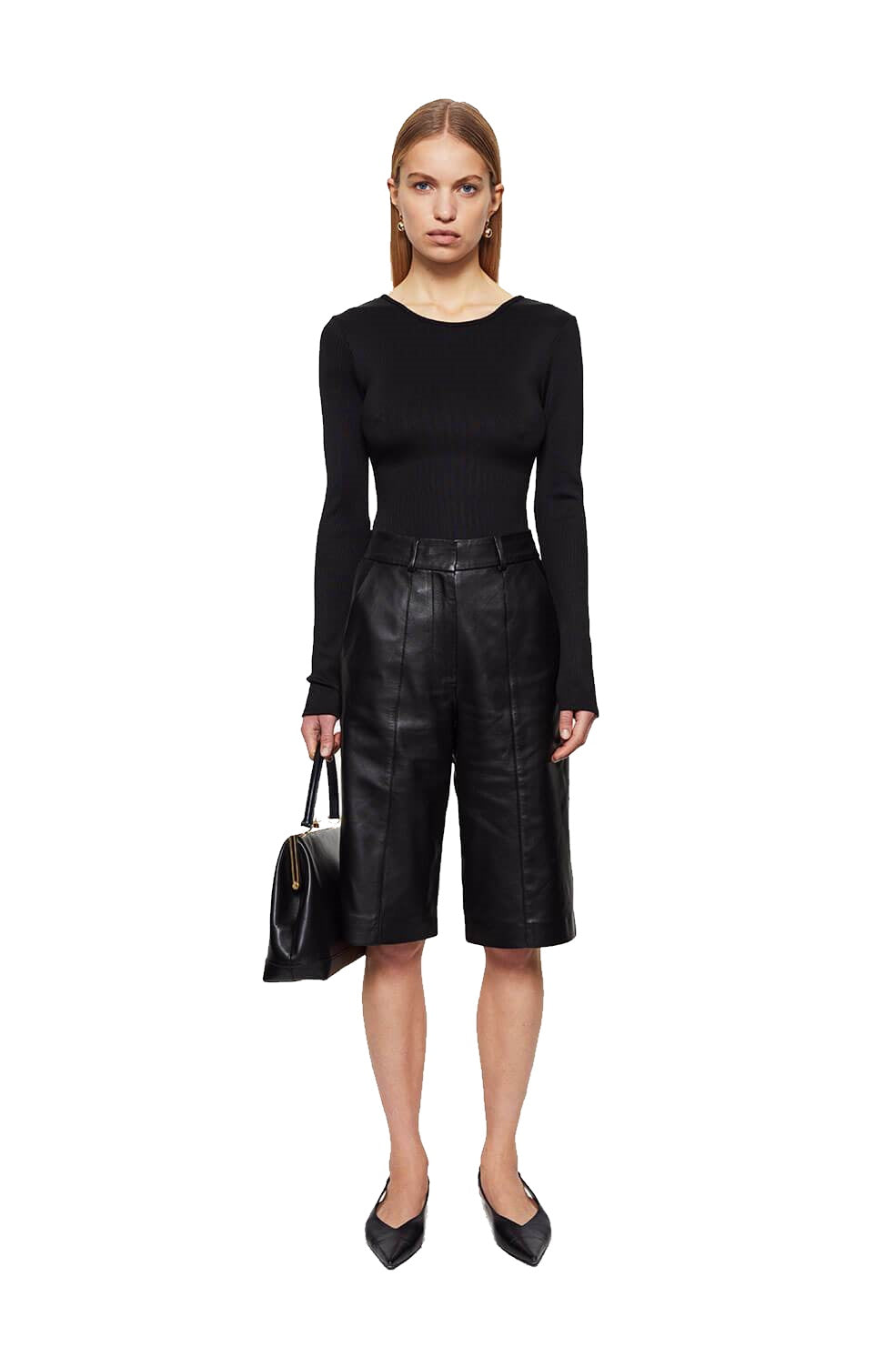 The "Lane Bodysuit" is truly a classic. Featuring a ribbed, nylon-spandex blend with a slight sheen, this piece offers seamless transition from day to night.