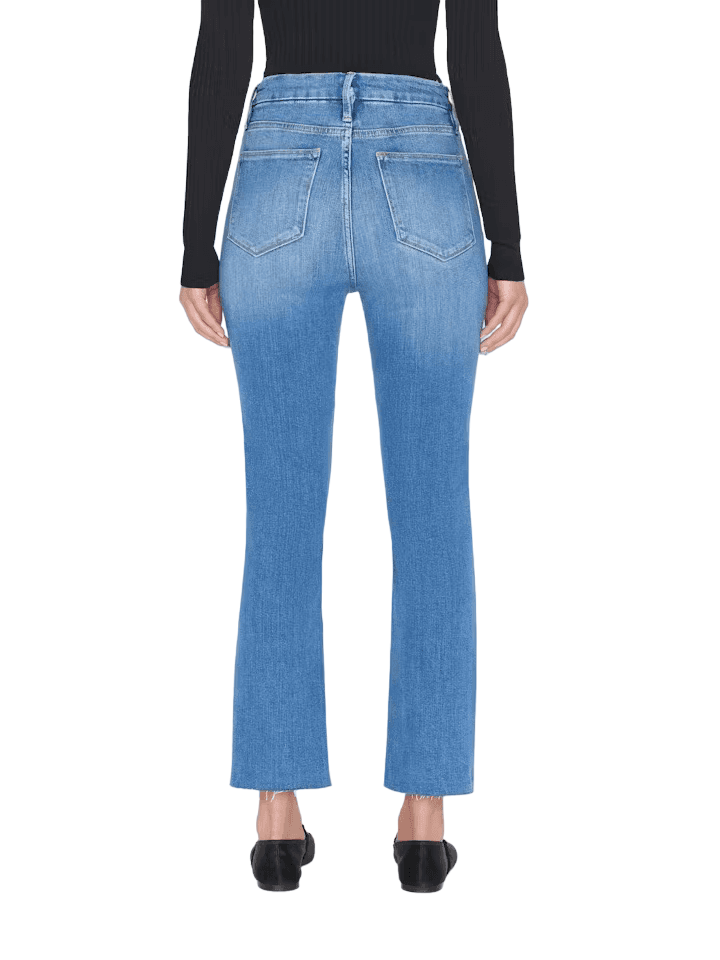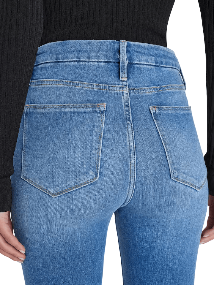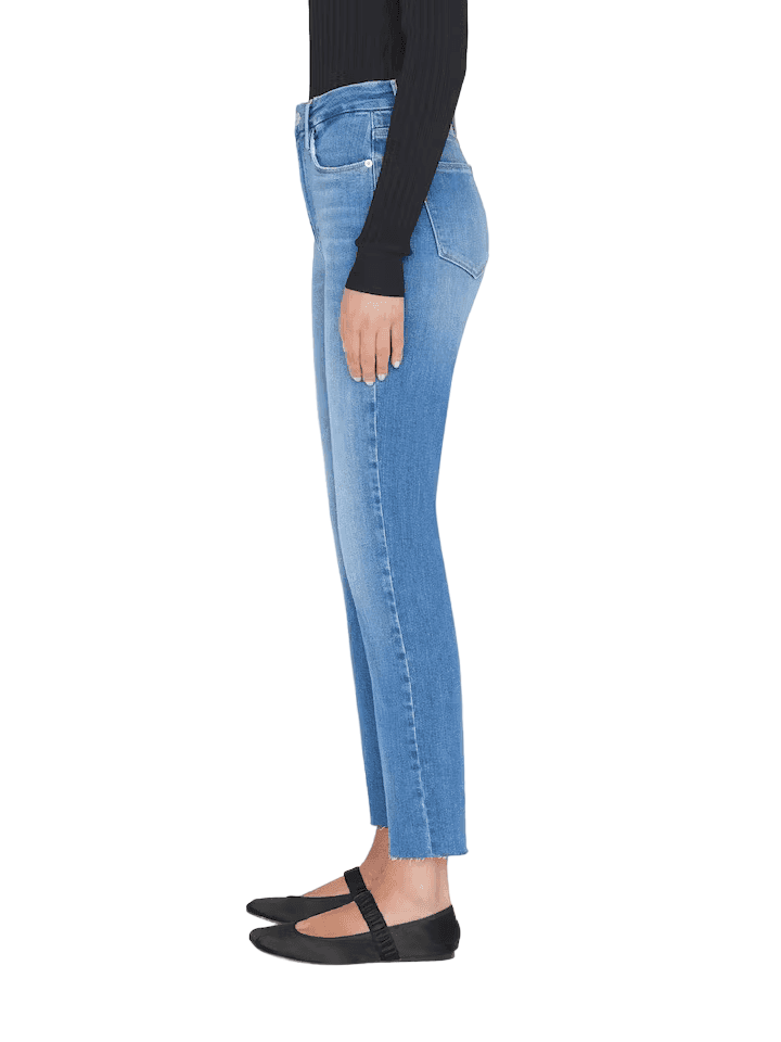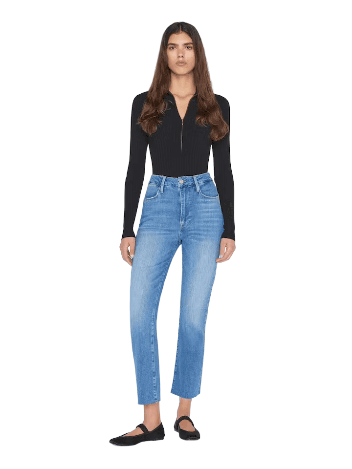 The "Le Super High Straight" from Frame features a ultra-high 11 1/4" front rise, sleek straight fit, and a cropped 27" inseam.