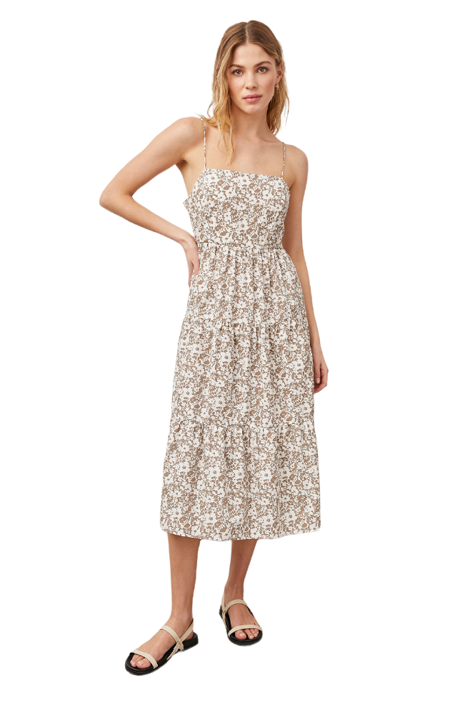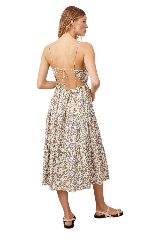 The "Leni" from Rails is an open back midi dress is featured in a tiered silhouette with a classic square neckline.