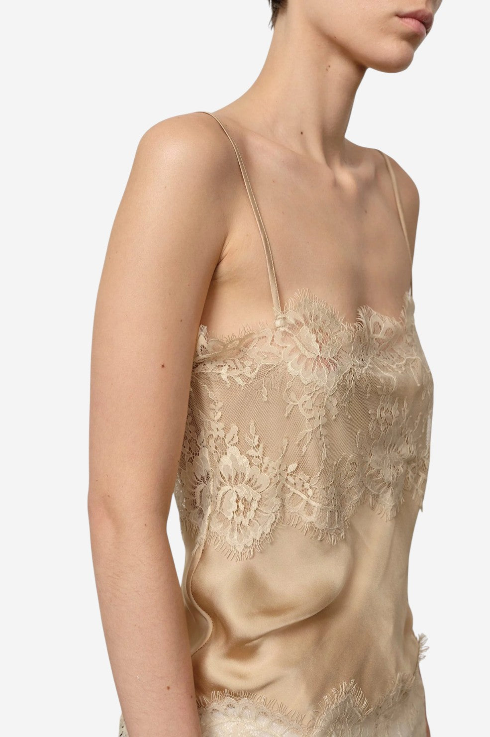 Slip into effortless elegance with the "Linnea Top" from Herskind. Cut from fluid satin with a delicate lace trim, this cami brings a touch of romance to any look. Spaghetti straps and a straight neckline keep the silhouette clean and versatile, perfect for layering or wearing solo.