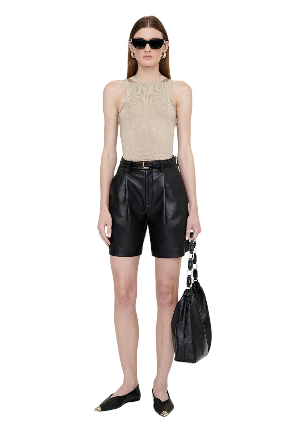 The "Noel Top" from Anine Bing is a slim-fitting, racerback knit with self binding at its high crew neckline.