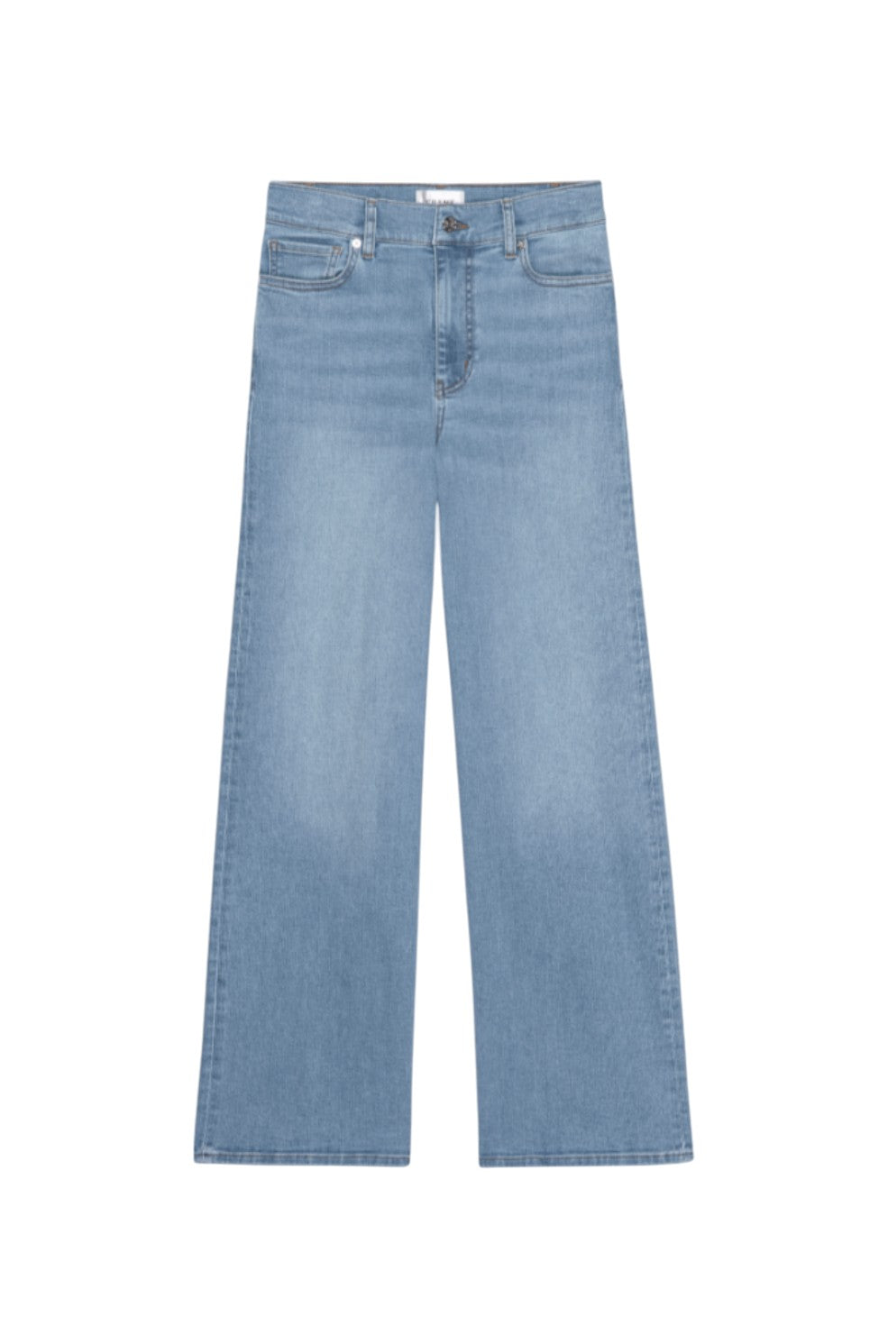 The "Le Slim Palazzo" from FRAME is a bestselling high-rise flare jean that blends eco-conscious craftsmanship with everyday elegance. Designed with a flattering high waist, a fitted hip, and a slim palazzo leg that subtly flares and skims the floor, this silhouette is both polished and relaxed. Crafted from a sustainable ultra-stretch cotton blend, it offers all-day comfort with elevated style. Finished with a clean button fly, it’s the perfect jean for dressing up or keeping it effortless.