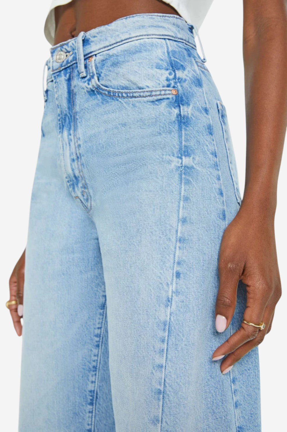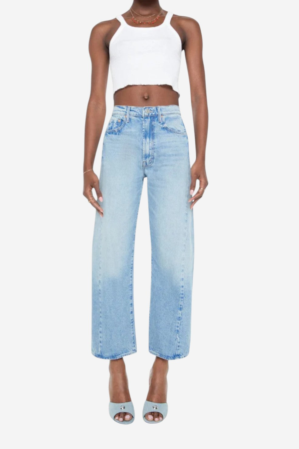 The "Half-Pipe Ankle" from MOTHER delivers bold vintage energy with a fresh, modern shape. This super high-rise jean features a wide, curved leg and ankle-length inseam for a standout silhouette that still feels wearable. Crafted from 100% rigid cotton denim in a light blue wash with soft fading and whiskering, it’s made to mold to you over time—because good denim is always worth the wait.