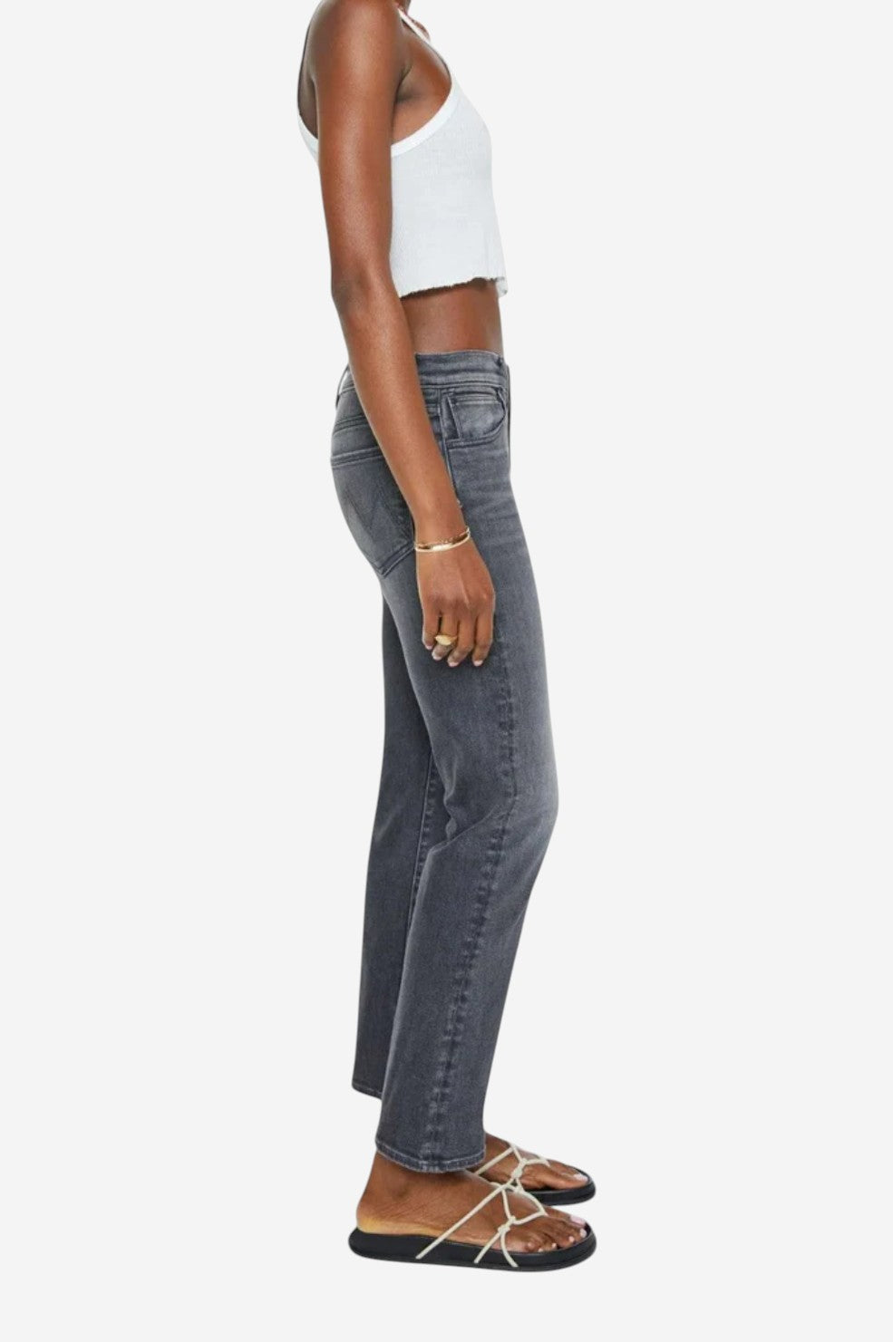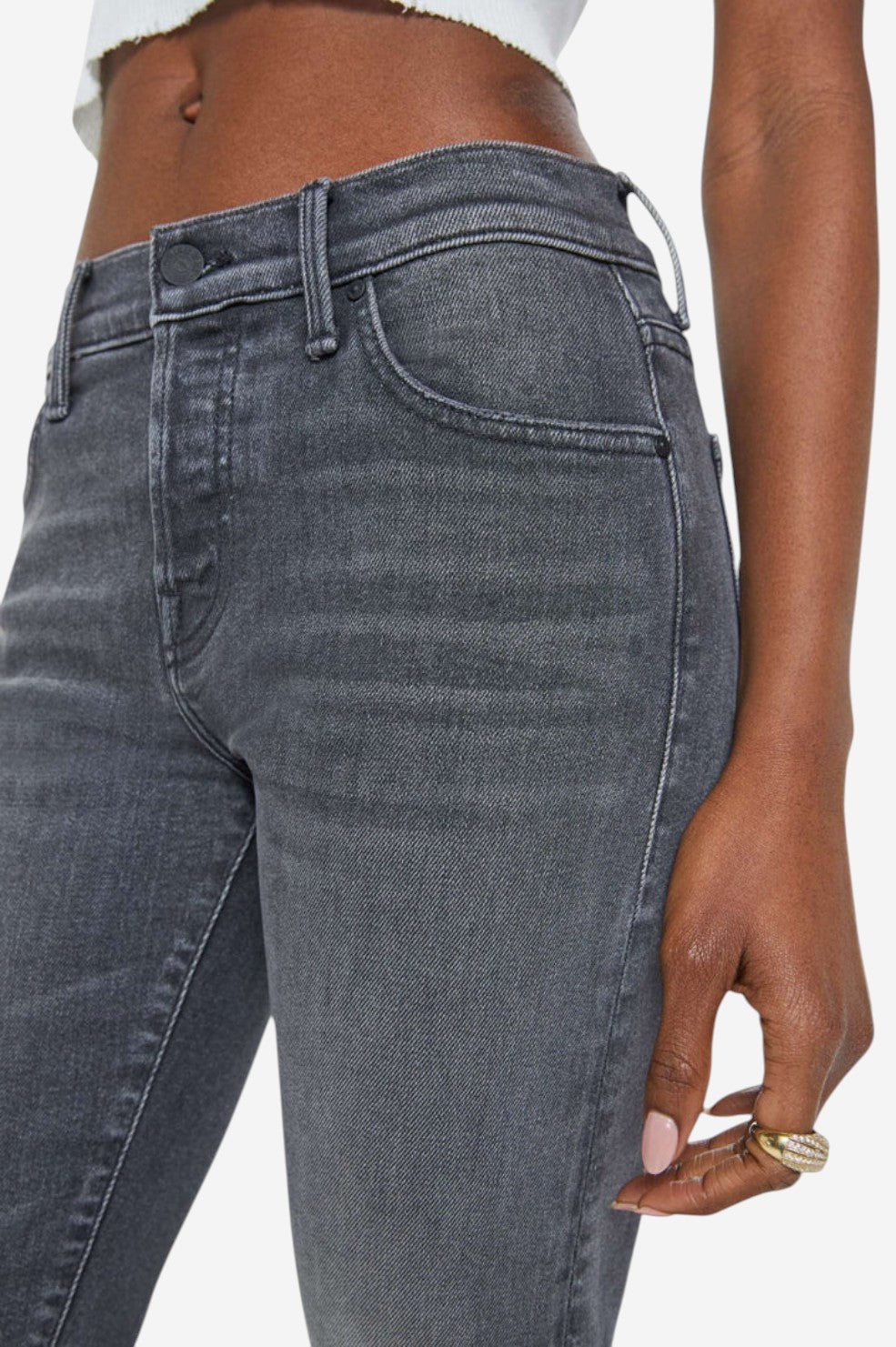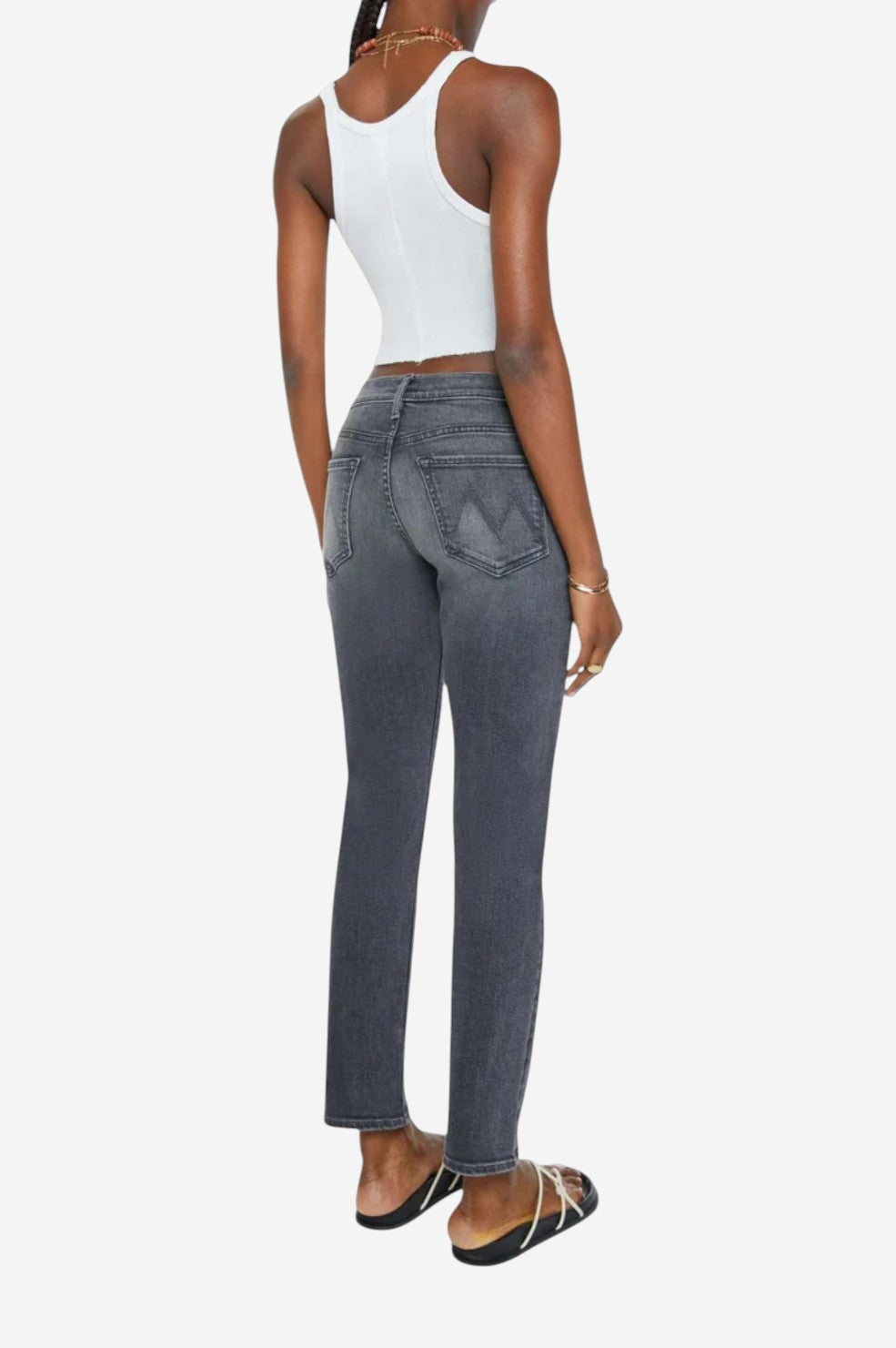 Laid-back with a borrowed-from-him edge. "The Mid Rise Hiker Hover" is a slim straight-leg jean inspired by MOTHER’s men’s line, updated with a feminine fit. It features a mid rise, low-set back pockets, and a clean hem for a streamlined look. Cut from soft, stretch-infused denim in Call It A Night—a faded black wash with subtle whiskering and knee wear—this pair walks the line between cool and classic.