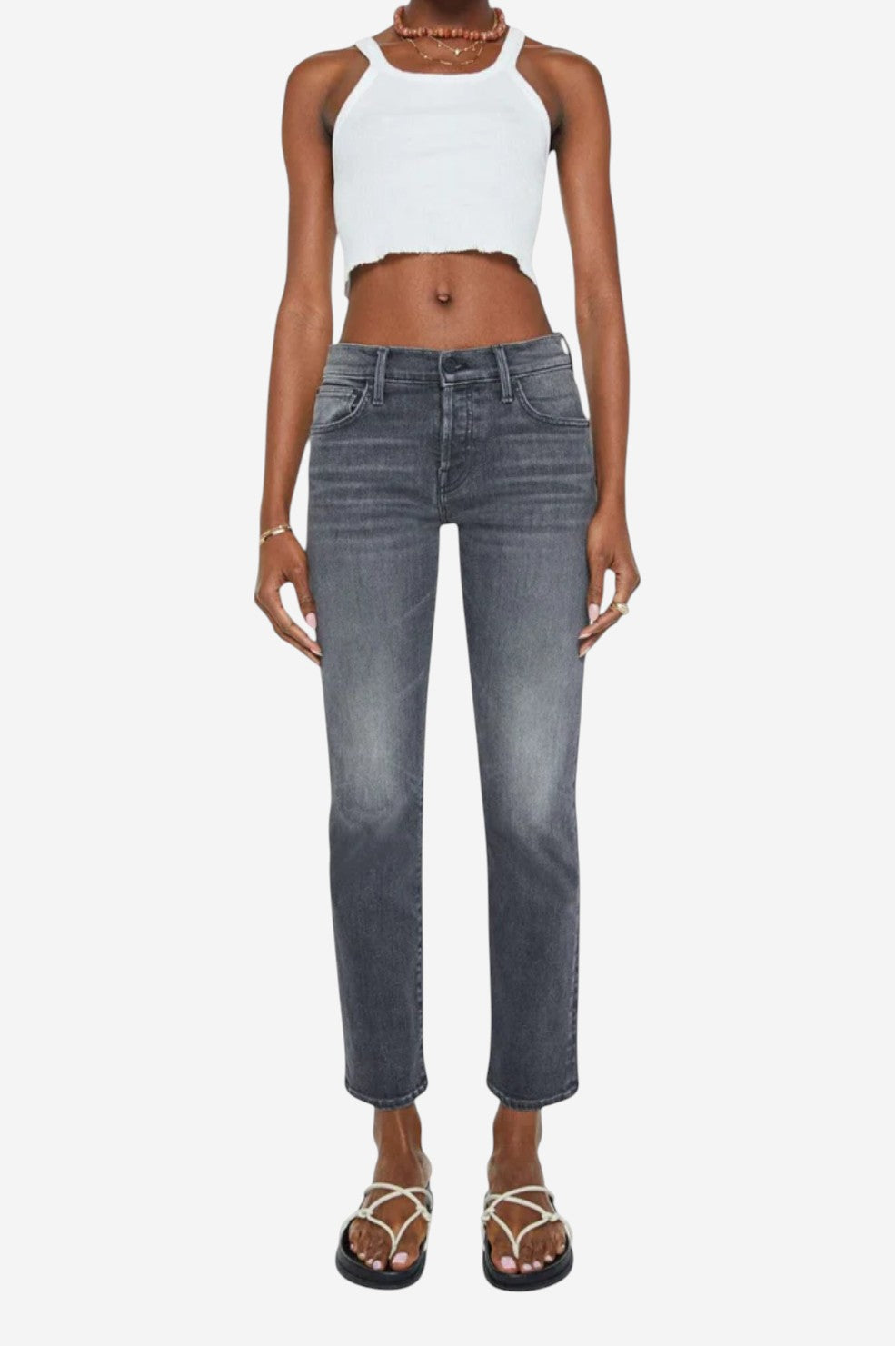 Mid rise with slim straight leg