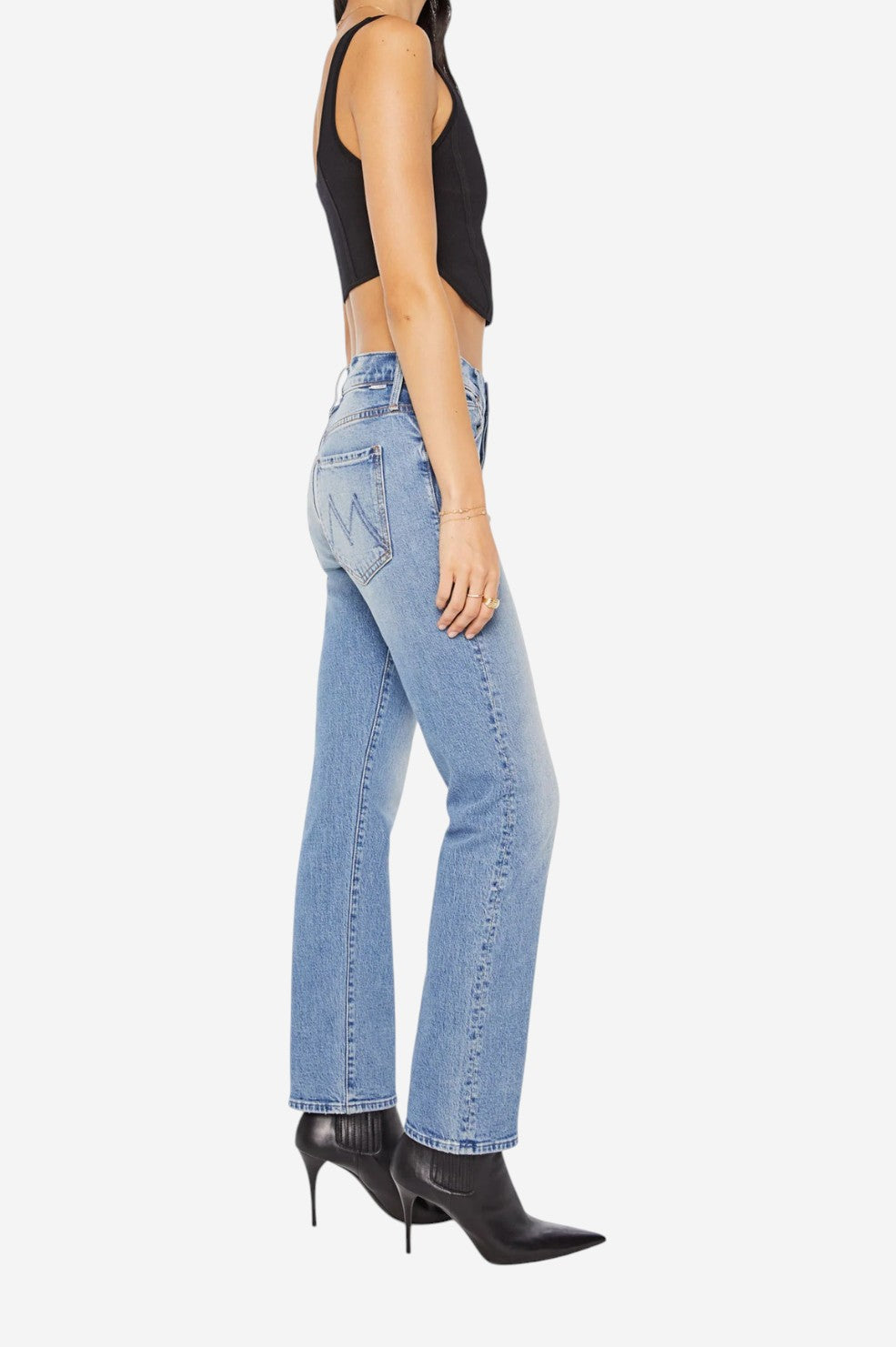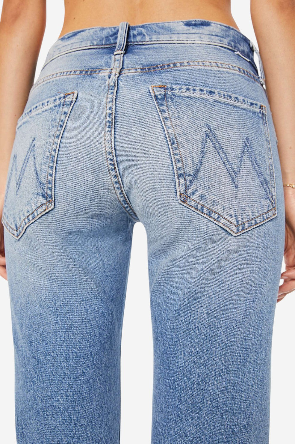 "The Mid Rise Hiker Hover" from MOTHER delivers a laid-back, borrowed-from-the-boys vibe in a slim, straight-leg silhouette. Designed in a mid-blue wash with natural whiskering and gentle fading at the knees, these jeans strike the perfect balance between effortless and refined. The clean hem and mid rise make them a versatile choice for everyday wear, while the touch of stretch ensures comfort without sacrificing style.