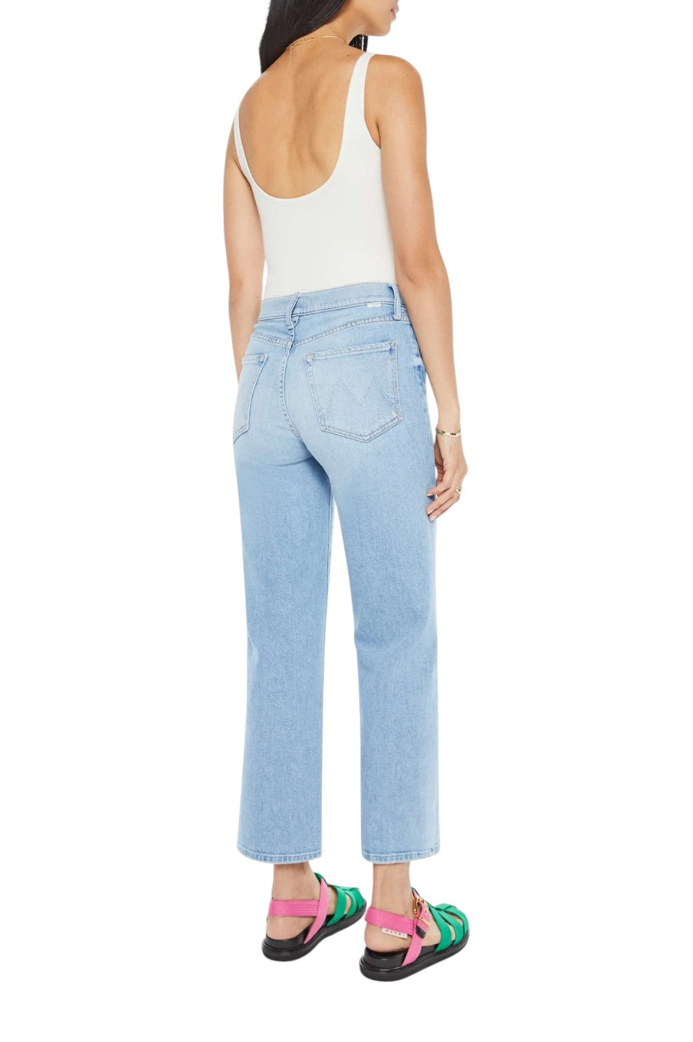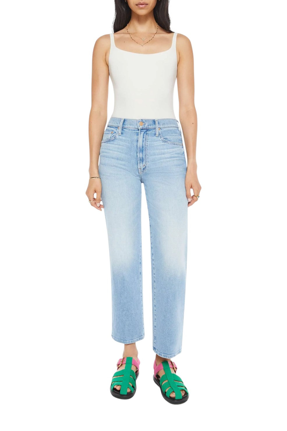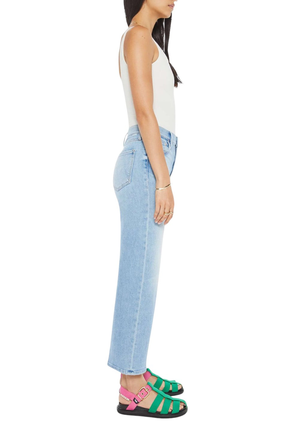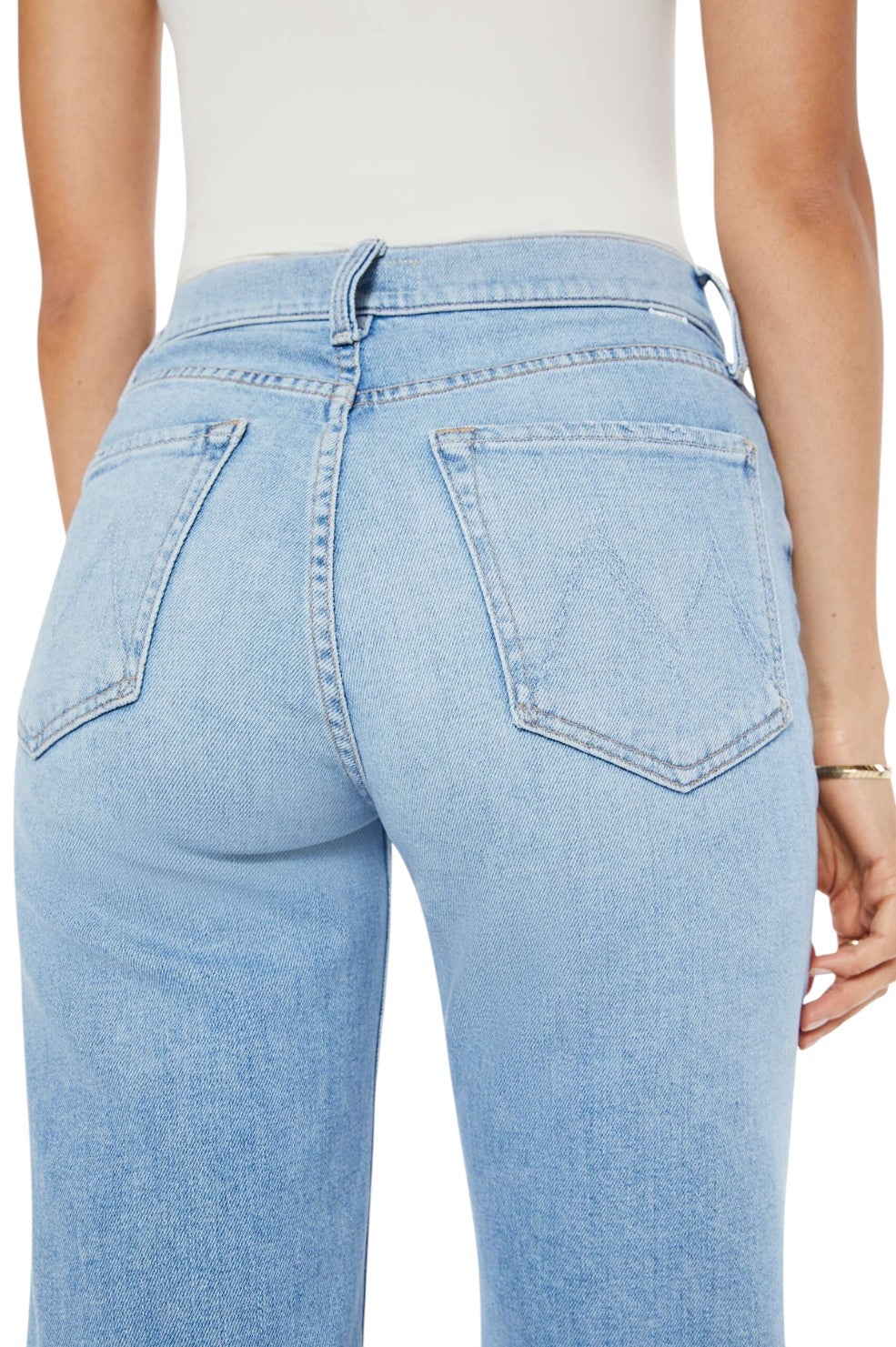 The "Rambler Sip Ankle" from MOTHER features a high-rise fit with a wide, straight leg that hits right at the ankle. Crafted from soft stretch denim, this pair comes in a light blue wash with subtle whiskering and gentle fading for a naturally lived-in feel. Finished with a clean hem and a classic zip fly, these jeans are the perfect mix of vintage attitude and modern comfort.
