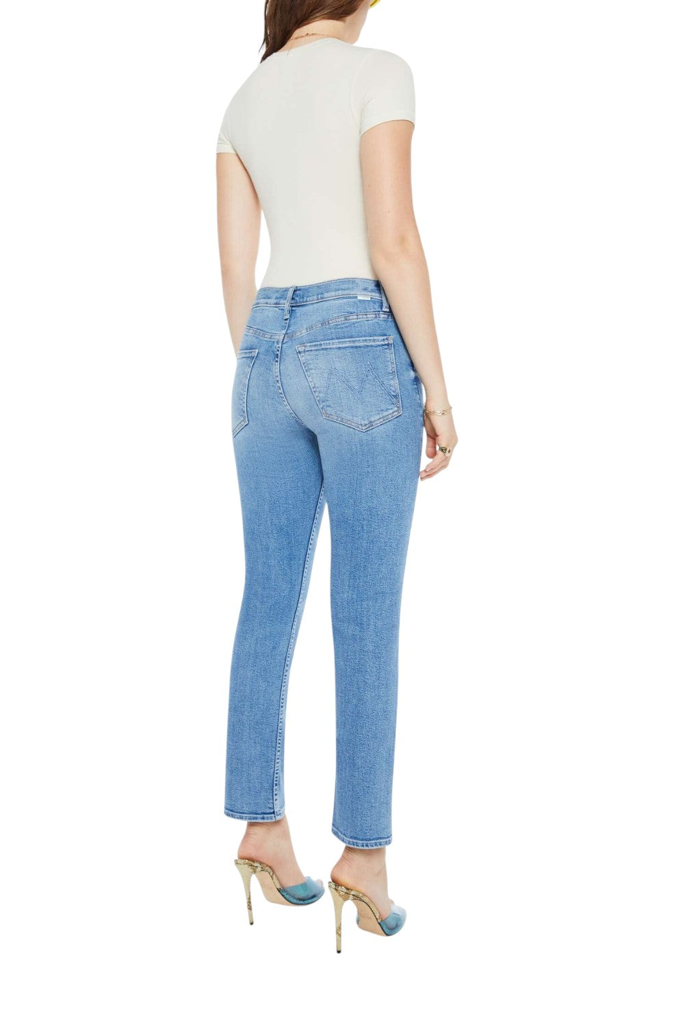 The "Tomcat Flood" from MOTHER is a vintage-inspired jean with a high-rise waist and straight-leg fit. Crafted in Los Angeles from a soft cotton blend, the Tasty Waves wash is a versatile mid-blue with subtle fading and whiskering for a lived-in feel. Finished with a button fly and clean hem, these effortlessly stylish jeans are perfect for everyday wear.