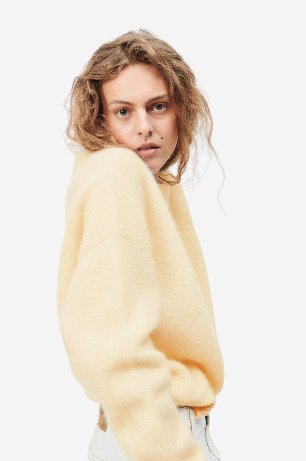The "Vitow Jumper" from American Vintage is a timeless knit that blends softness, warmth, and effortless style. Spun from premium Italian yarn, its fluffy, compact texture offers cozy comfort while maintaining a polished look. With its loose fit and boat neckline, this sweater is designed to drape beautifully—perfect for pairing with denim for casual days or a skirt for a more elevated touch.