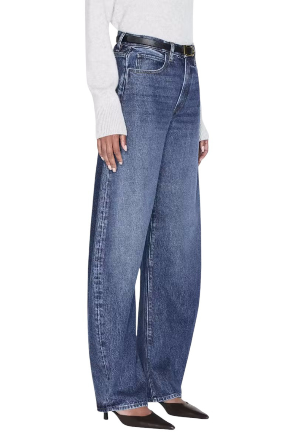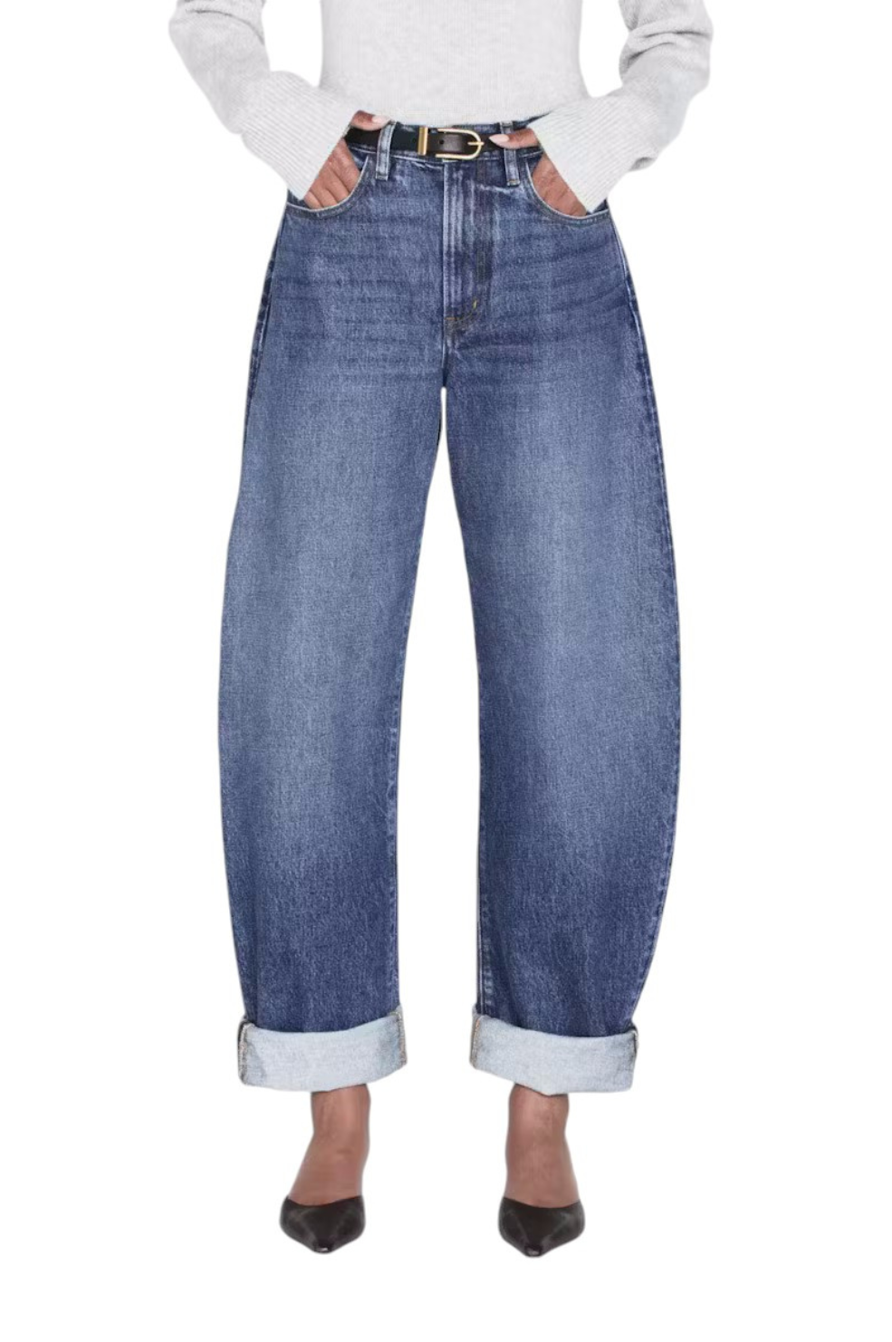 The "Bubble" from Frame is a bold interpretation of the barrel silhouette and is a must-have for your wardrobe. With a flattering high rise and curved outseam for a playful bubble effect, these jeans are designed to be cuffed at the ankle. The 2.5" cuff can be unrolled for a longer, dramatic look.