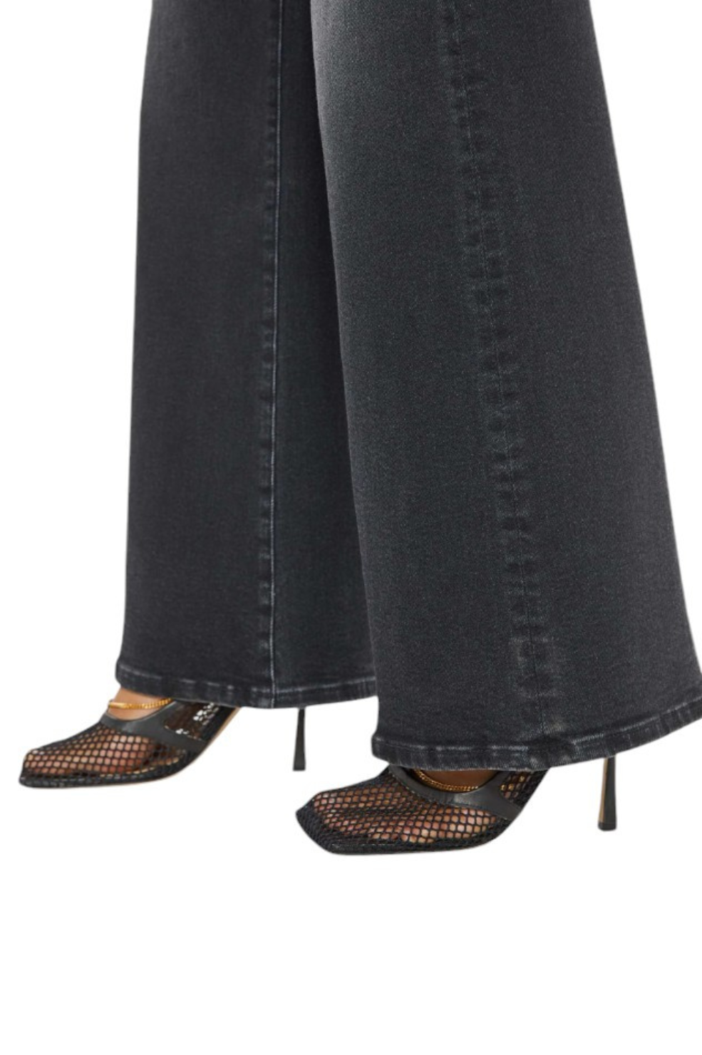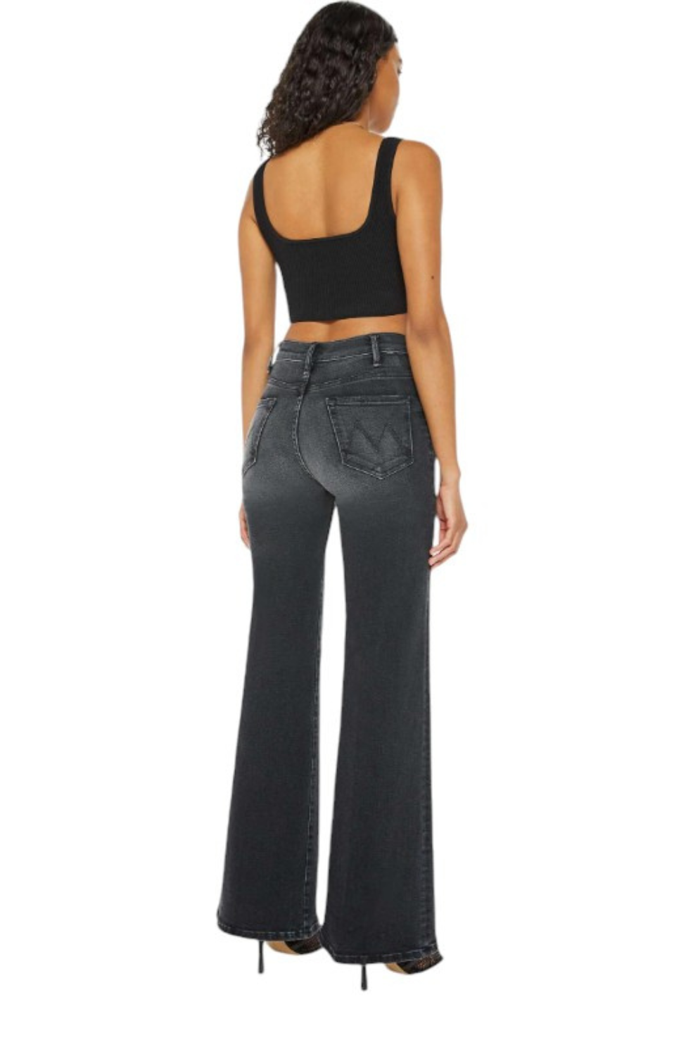 The "Hustler Roller Sneak" from MOTHER are a 70s-inspired wide-leg jean that feature a high rise, 32-inch inseam, and clean hem. Made from a stretch cotton blend, the Not Today Satan style comes in a black wash and tonal hardware.