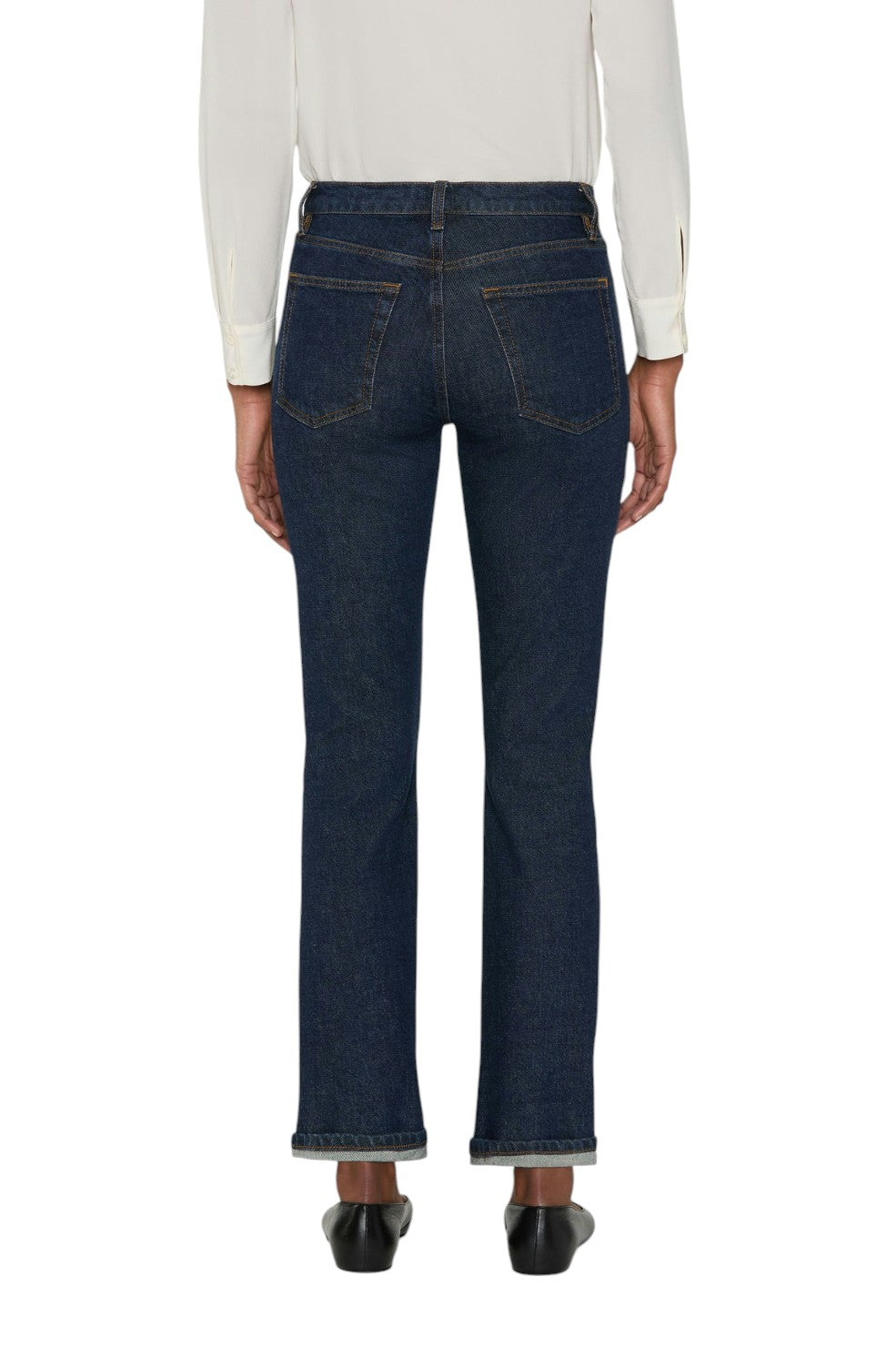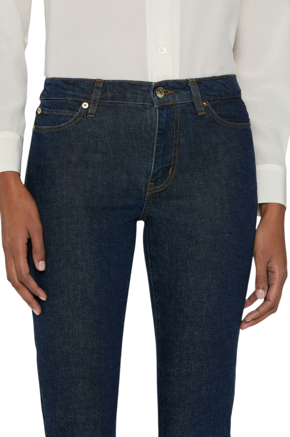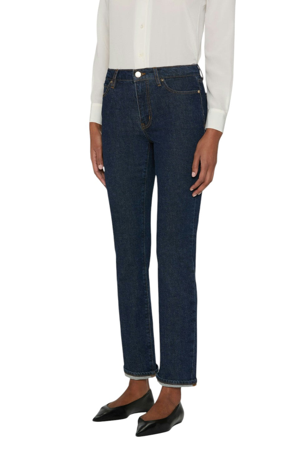 The "Borrowed" from Frame is a boyfriend jean redefined for the new millennium. This mid-rise silhouette hugs the hips and finishes with an ankle-length inseam, perfect for styling with a 1” cuff or unrolled for a longer look. Made from Structured Stretch denim, it offers a vintage vibe with modern comfort.