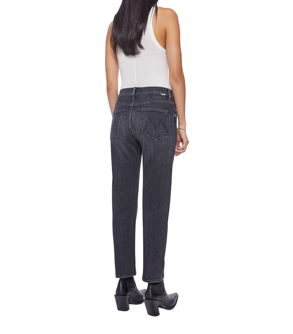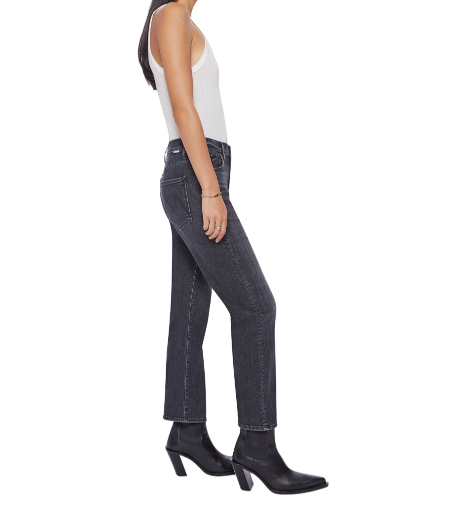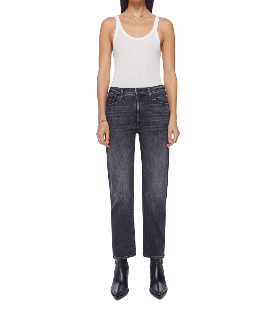 The "Hustler Roller Ankle" from MOTHER features a zip fly, slouchy straight leg and relaxed fit that's designed to sit on the hips.