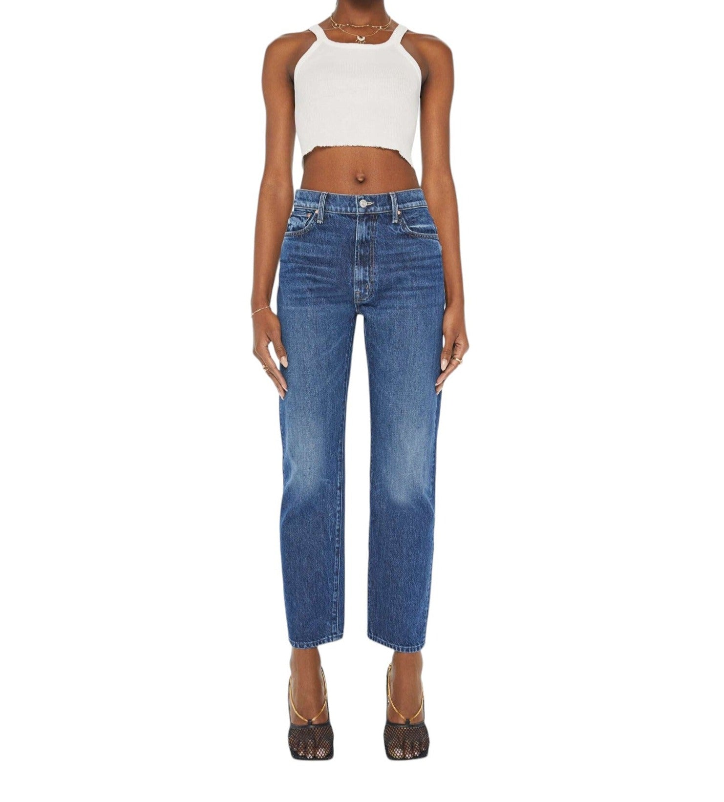 The "Ditcher Zip Flood" from MOTHER is a slouchy straight-leg jeans with a zip fly, 28.25-inch inseam and a slightly dropped crotch and a slouchier fit designed to sit on the hips.