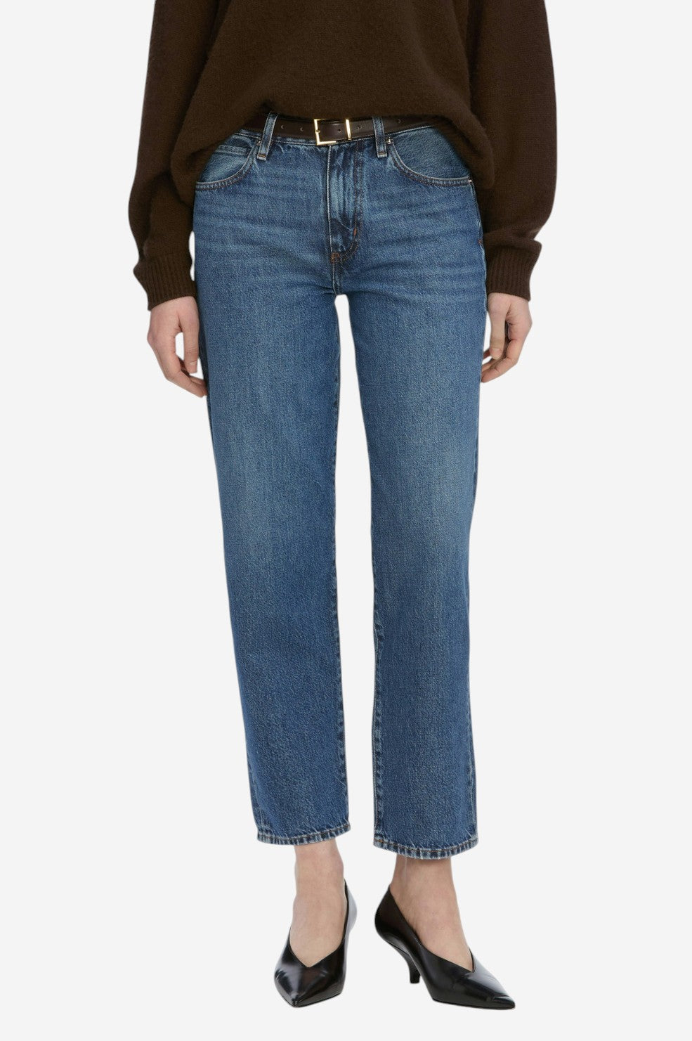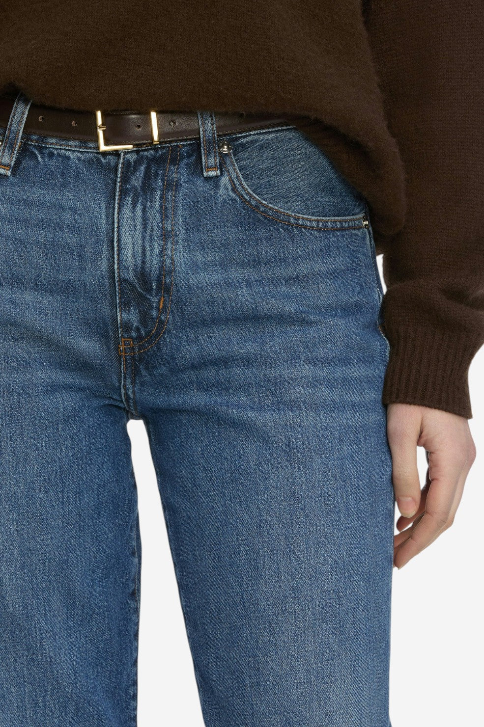 The "Hang" from FRAME is a refined take on the relaxed jean—crafted to drape effortlessly from a mid-rise waist with a straight leg that offers just the right amount of room through the hip and thigh. The result? A fluid fit that’s never slouchy, always polished. Finished in rigid luxury denim, it’s the perfect balance of laid-back ease and tailored sophistication.