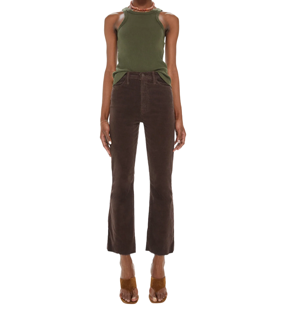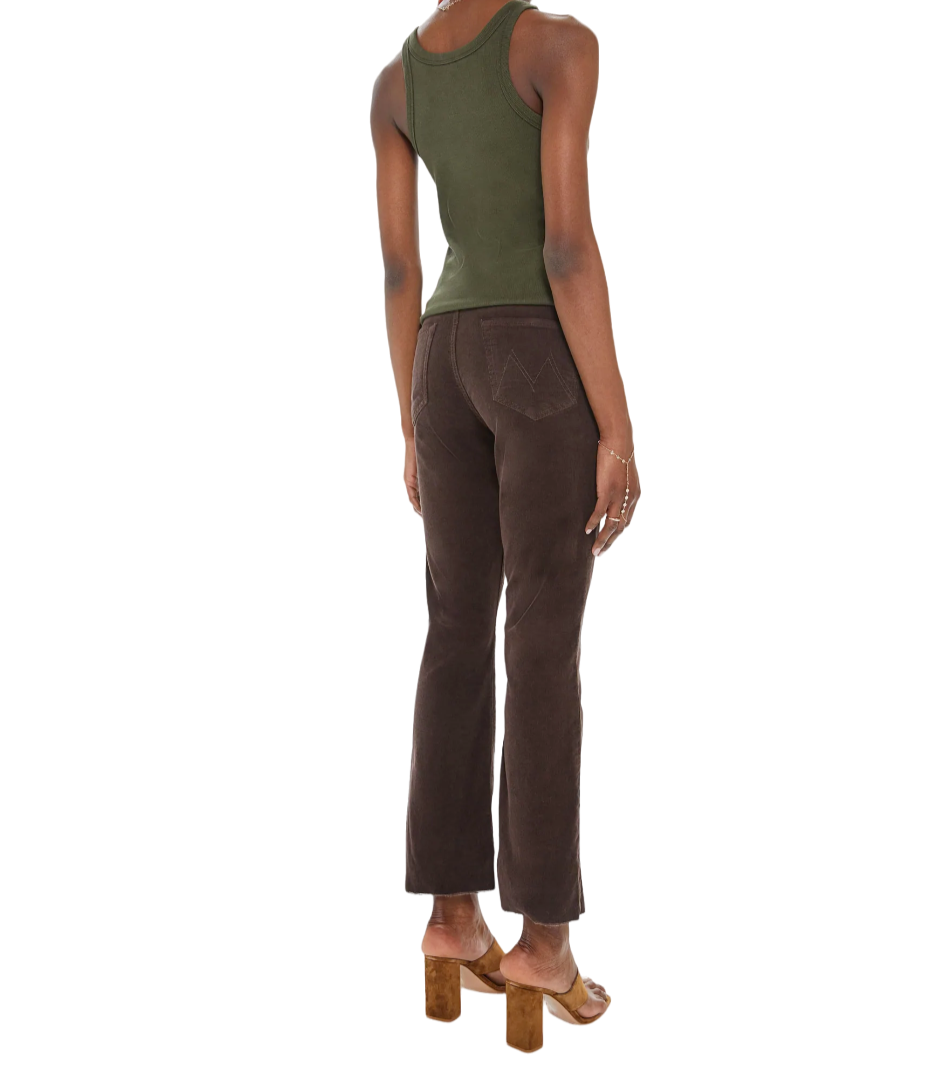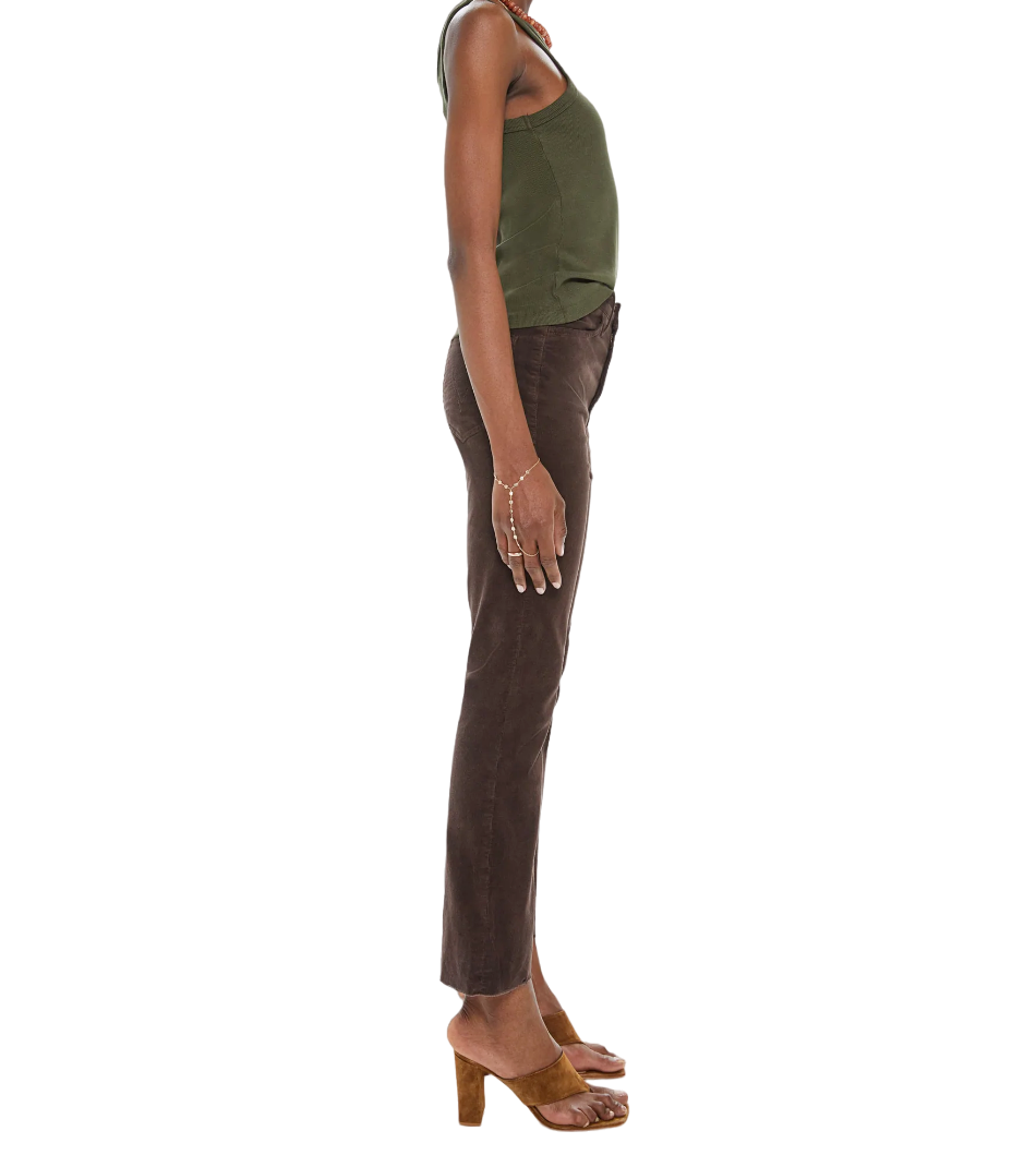 The "Hustler Ankle Fray" in Mole from MOTHER are cut from soft corduroy in a chocolate brown hue with tonal hardware.