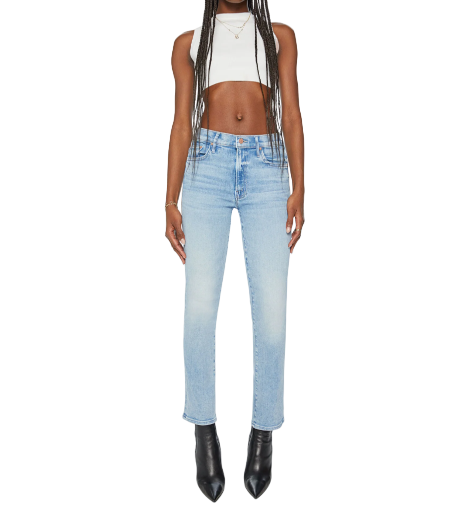 The "Insider Flood" from MOTHER are a mid-rise bootcut has a 29.25-inch inseam and a clean hem.