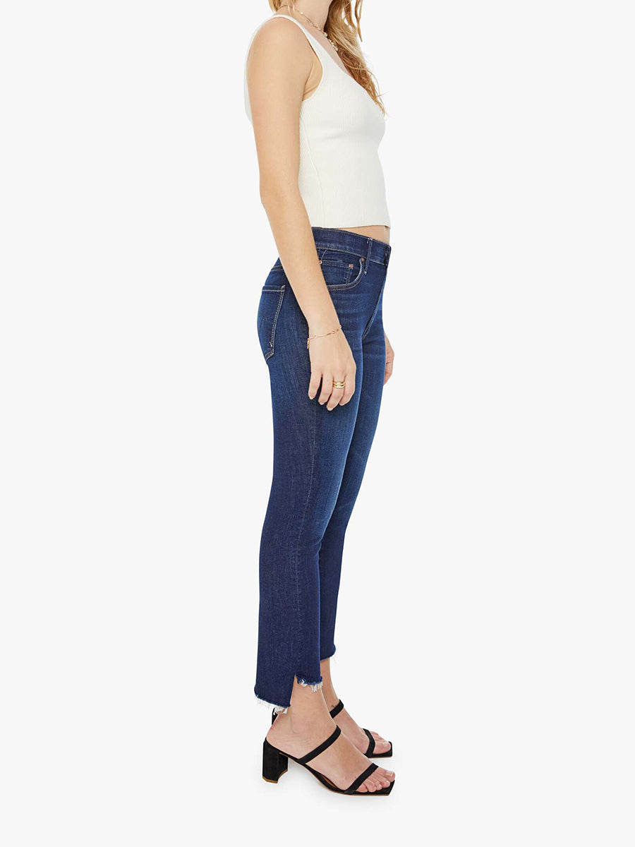 MOTHER has adjusted the proportions of our top denim styles to complement petite body types 5’4” and under. The knee placement is higher, and the inseam and rise are shorter, so the style hits in all the right places. The "Lil' Insider Crop Step Fray" is a high-waisted bootcut that is cropped at the ankle with a frayed step-hem.