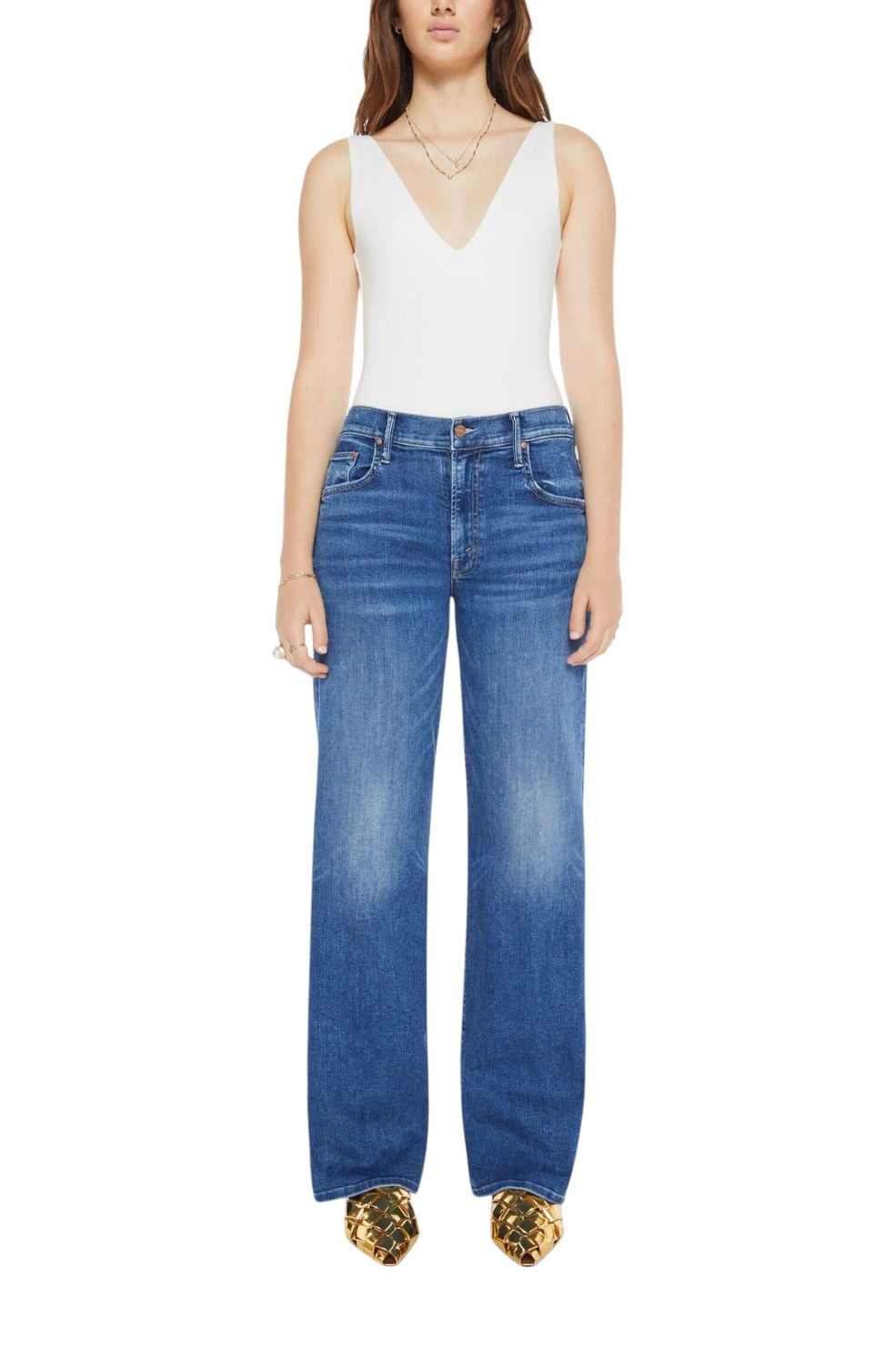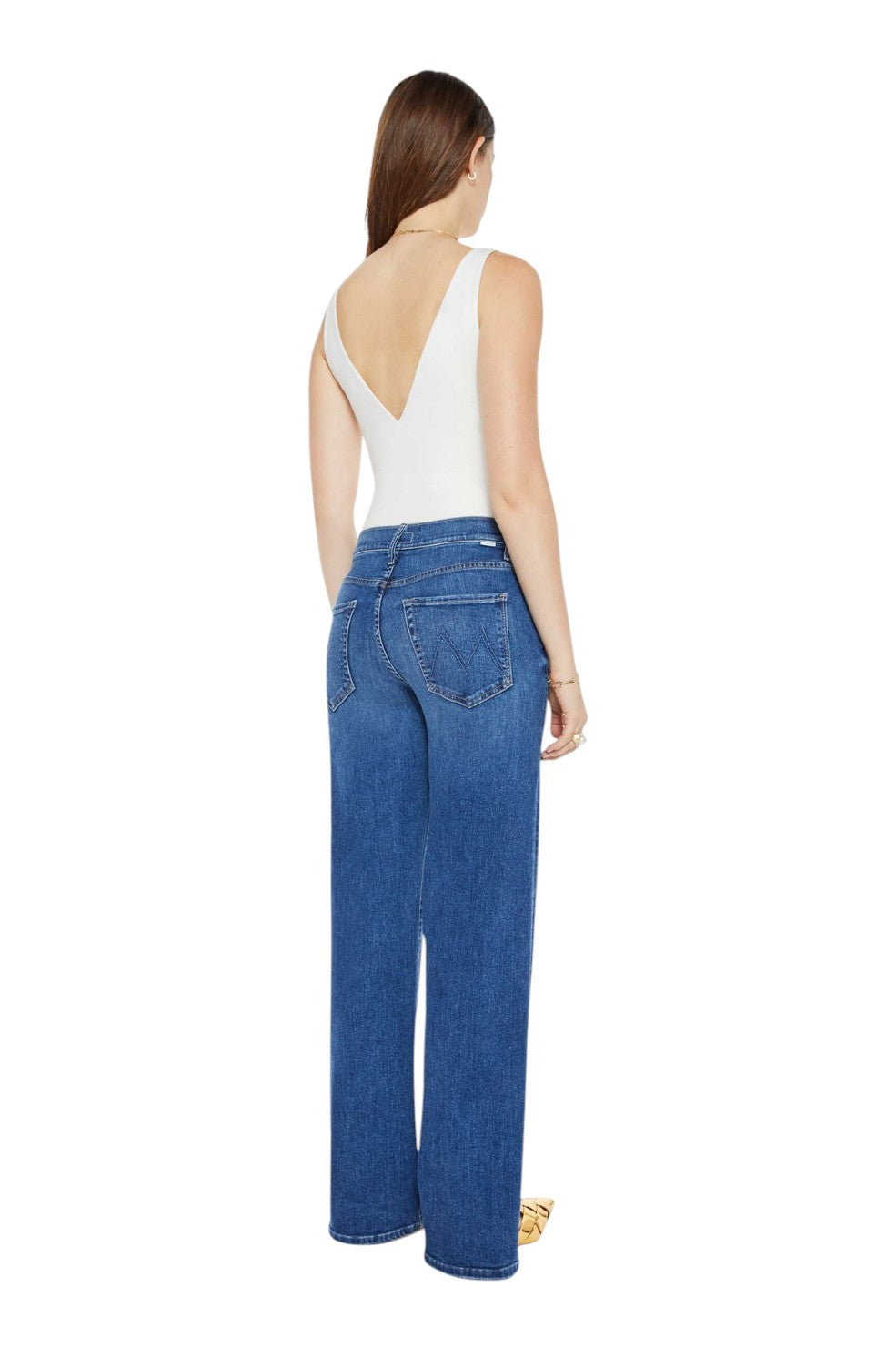 The Mid Rise Maven Sneak" from MOTHER is all about making a statement. These mid-rise jeans feature a loose fit, wide leg, and a 32-inch inseam with a clean hem. Crafted from a blend of recycled stretch denim, the Over The Top wash offers a mid-blue hue with subtle whiskering and knee fading. Perfect for those who believe more is more, these jeans are designed for both comfort and standout style.