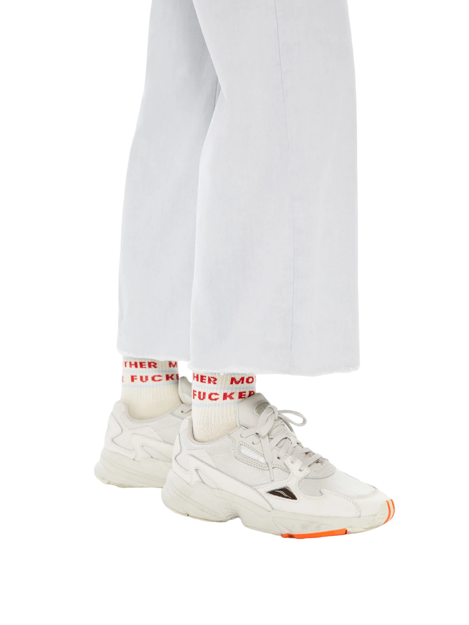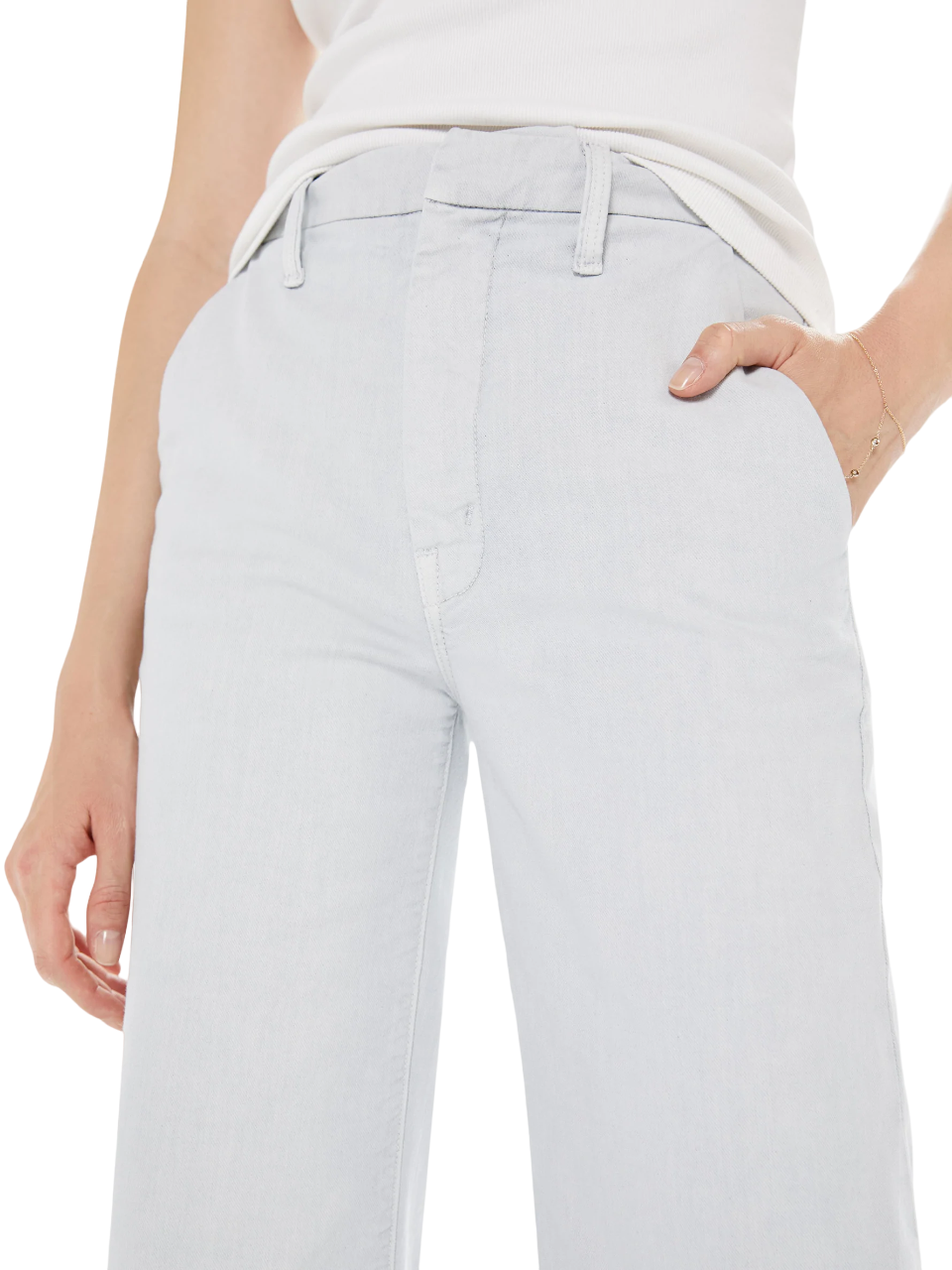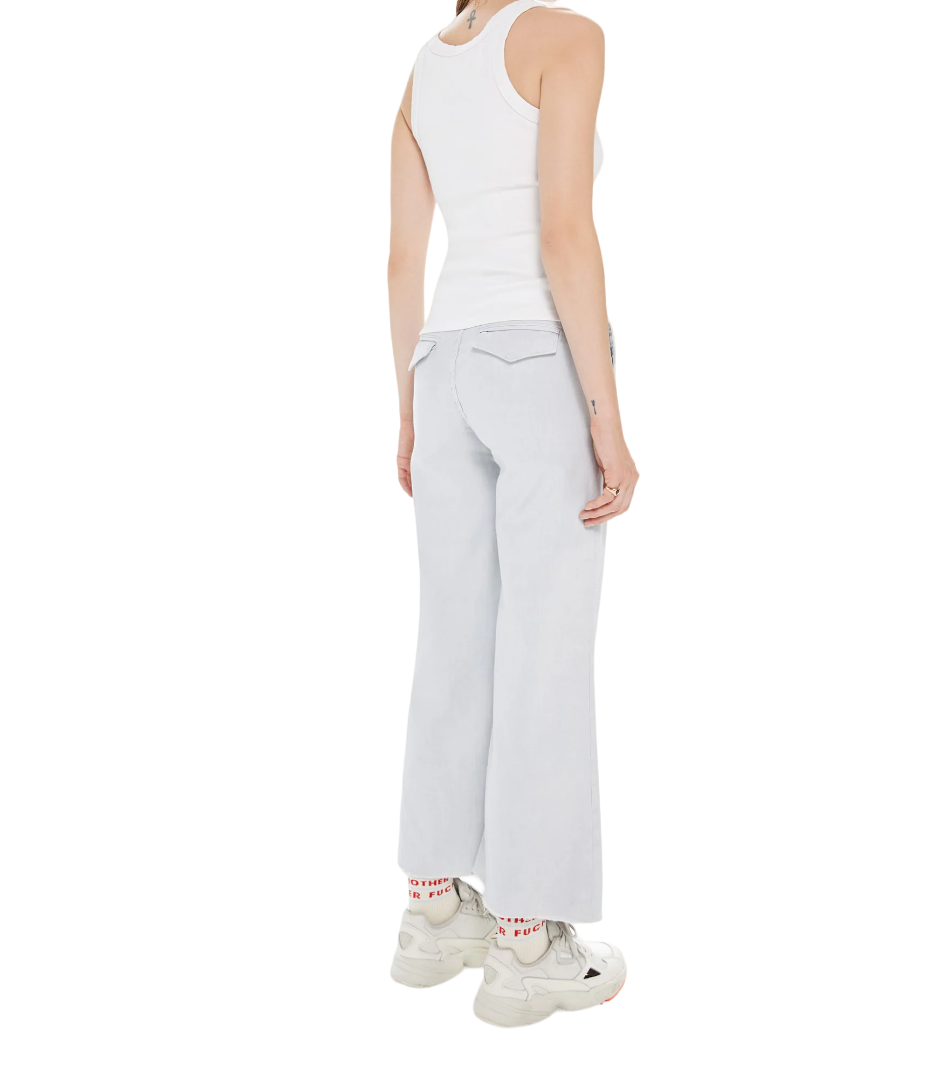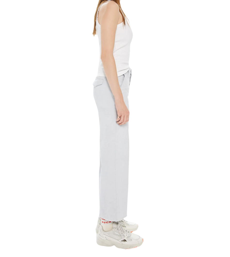 The "Roller Crop Prep Fray" from MOTHER features back slit pockets, a cropped inseam and a frayed hem. The pants are cut from comfortable stretch twill in a light blue hue.